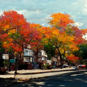 The image on the right is a Midjourney AI render. The words I used were summer turning to fall in a Queens neighborhood. I am not sure if I should’ve added Queens NY or not. But I like the render. I will be using more images in the future.